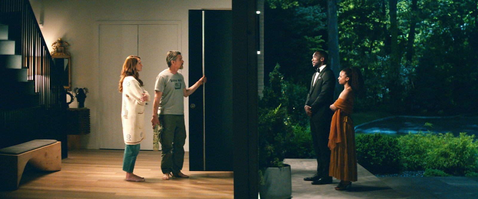 “Leave the World Behind” es una adaptación de la novela homónima de Rumaan Alam. La trama sigue a una pareja adinerada de Brooklyn, Amanda y Clay, interpretados por Julia Roberts y Ethan Hawke, respectivamente. Deciden escapar del estrés de la vida cotidiana y pasar un relajante fin de semana con sus hijos en una casa de vacaciones en Long Island. Sin embargo, su tranquilidad se ve interrumpida cuando George, interpretado por Mahershala Ali, y su hija Ruth, interpretada por Myha’la Herrold, aparecen en la casa pidiendo refugio debido a un apagón en la ciudad.