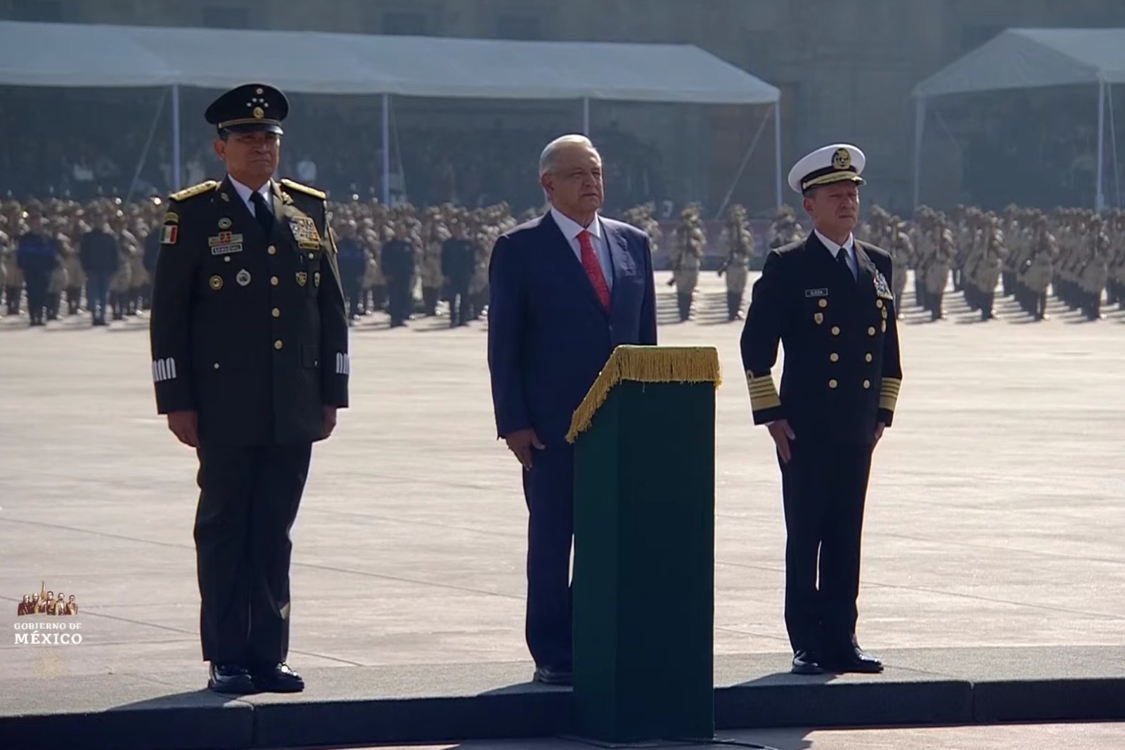 El mandatario mexicano salió de Palacio Nacional a las 10:05 h, acompañado por el general Luis Cresencio Sandoval, secretario de la Defensa Nacional (Sedena), y el almirante José Rafael Ojeda Durán, titular de la Secretaría de Marina (Semar).