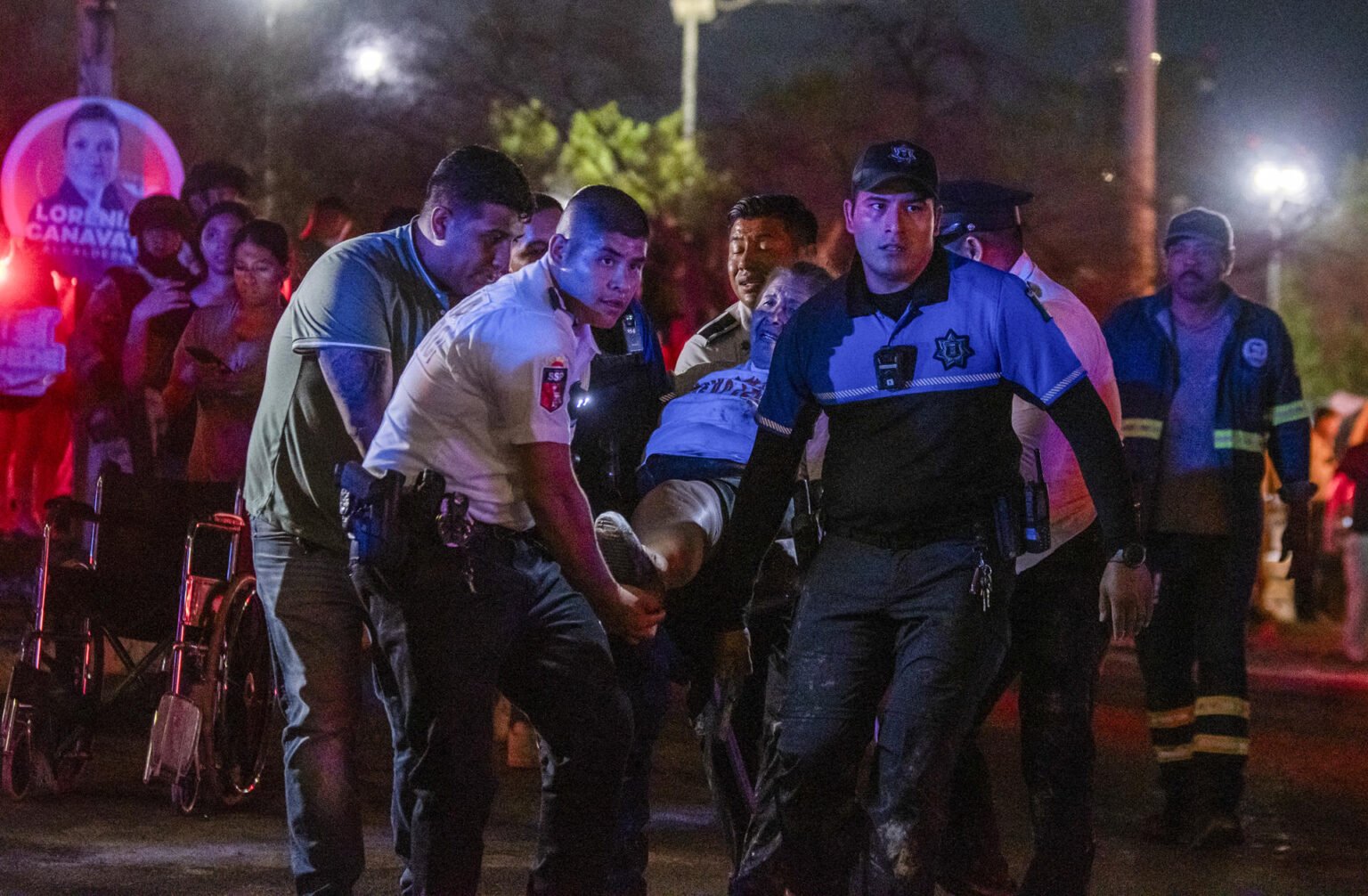 El gobernador de Nuevo León, Samuel García, afirmó que el desplome del escenario donde se llevaba a cabo un mitin de Movimiento Ciudadano en San Pedro Garza García los tomó por sorpresa, aunque se habían advertido ráfagas de viento fuertes. El mandatario detalló que ocurrió a las 20:08 horas debido a las ráfagas de viento violentas, lo cual resultó en una tragedia.