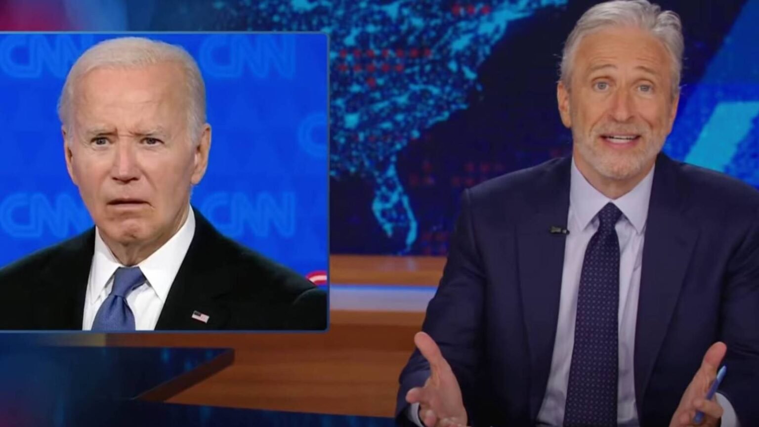 Jon Stewart se presentó en el escritorio de The Daily Show el lunes para evaluar el desempeño torpe del presidente Joe Biden durante el primer debate de 2024 en junio. Stewart mostró una serie de clips de video tanto de Biden como de sus aliados ofreciendo una letanía de excusas después del desastre.
