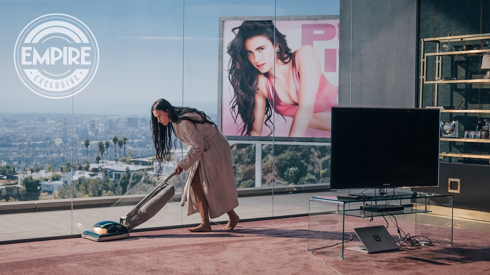 Ese tema es la imagen corporal y las expectativas sociales sobre cómo deberían lucir y comportarse los cuerpos, todo entrelazado con los elementos de género de la película. “Es una forma única de explorar el problema del envejecimiento y la perspectiva masculina de la mujer idealizada en la que hemos creído”, dice Moore. “No se trata de lo que nos han hecho, sino de la parte que hemos desempeñado en hacerlo nosotros mismos”. Es algo con lo que la estrella se identifica, habiendo escrito sobre los efectos del estrellato de Hollywood en su autobiografía, Inside Out. “Comparto bastante sobre mi experiencia en relación a mi cuerpo”, dice Moore. “Lo que pasé, los niveles de humillación, que me dijeran que perdiera peso. Aunque fue una circunstancia que experimenté, también fue el proceso de lo que me hice a mí misma, al poner demasiado valor en mi cuerpo en general. Pero dentro de eso, ha sido mi oportunidad de superarlo y encontrar valor en mí misma por quién soy en el interior”. Prepárate para una película que se adentra en el problema y saca todas las entrañas.