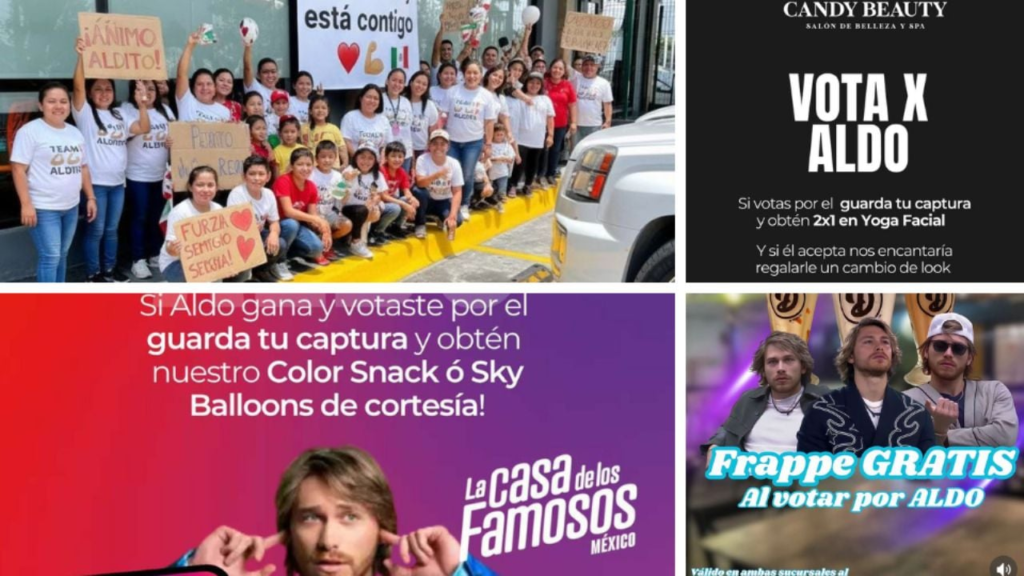 Distintos establecimientos de la ciudad han lanzado atractivas promociones para incentivar a los seguidores a votar por el exjugador de Rayados. Negocios como Color Box, Candy Beauty Salón de Belleza y Spa, El Asturiano y Delideliss han compartido en redes sociales sus iniciativas para premiar a quienes apoyen a Aldo en la recta final del programa.