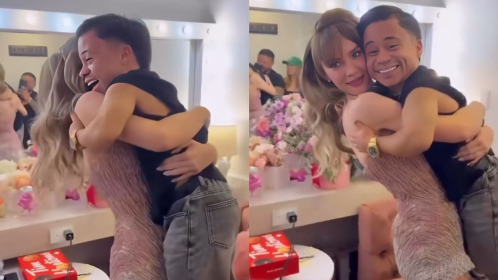 Tras finalizar la función, la artista fue sorprendida detrás del escenario por Abelito, el popular influencer y tercer finalista del reality La Casa de los Famosos México. Al verlo, Belinda no ocultó su alegría y corrió a abrazarlo con entusiasmo. En un gesto espontáneo, la cantante incluso lo cargó, mientras Abelito mostraba una expresión de sorpresa y felicidad.