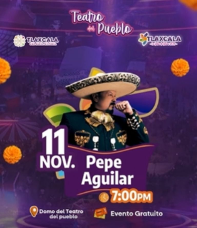 ¡La espera ha terminado! Hoy, martes 11 de noviembre de 2025, la capital tlaxcalteca se vestirá de gala para recibir a una de las máximas figuras de la música regional mexicana: Pepe Aguilar. El aclamado artista se presentará de forma gratuita en el icónico Teatro del Pueblo como parte de la cartelera estelar de “Tlaxcala, la Feria de Ferias 2025”.