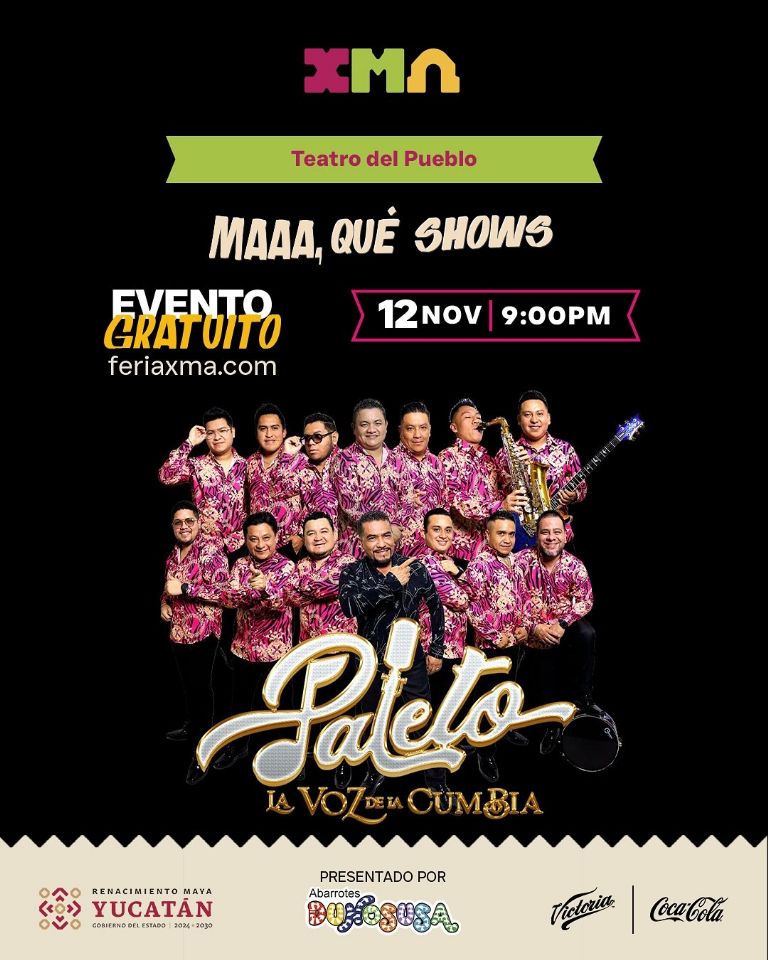 A pesar de que el inicio del concierto es hasta las 21:00 horas, se sugiere ingresar al Teatro del Pueblo a partir de las 20:30 horas para asegurar un buen lugar. Recuerda que el acceso al concierto de Paleto y a todos los eventos del Teatro del Pueblo está incluido con el boleto de entrada general a la Feria Xmatkuil.